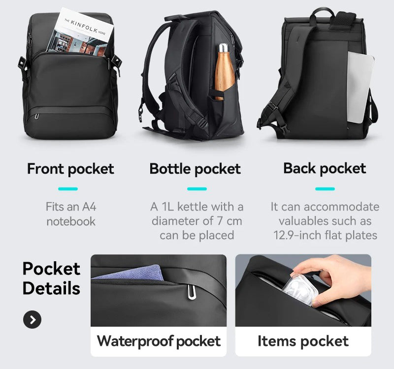 Keywords: EchoPack Backpack, Luxe Backpack, Men's Business Travel Backpack, Oxford Cloth Backpack, Laptop Backpack, 15.6" Backpack, Daily Life, Outdoor Backpack, Business Commuting, Zipper Opening, Multifunctional, High-Quality, Waterproof, Stylish Look, Lightweight