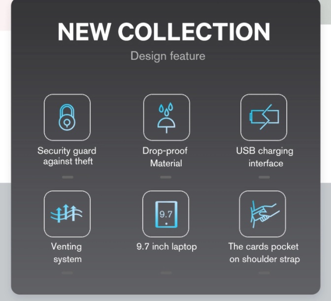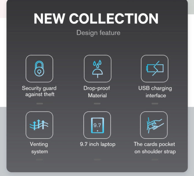 The best Backpack I have ever owned, Charing port Works and lots of space for my laptop, phone and iPad.