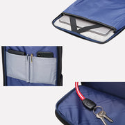 j.b. This backpack is sturdy, at the same time not being too heavy. There's lots of pockets and a laptop sleeve. I love the small pocket at the top on the outside. It's the perfect size for his snacks for snack time.