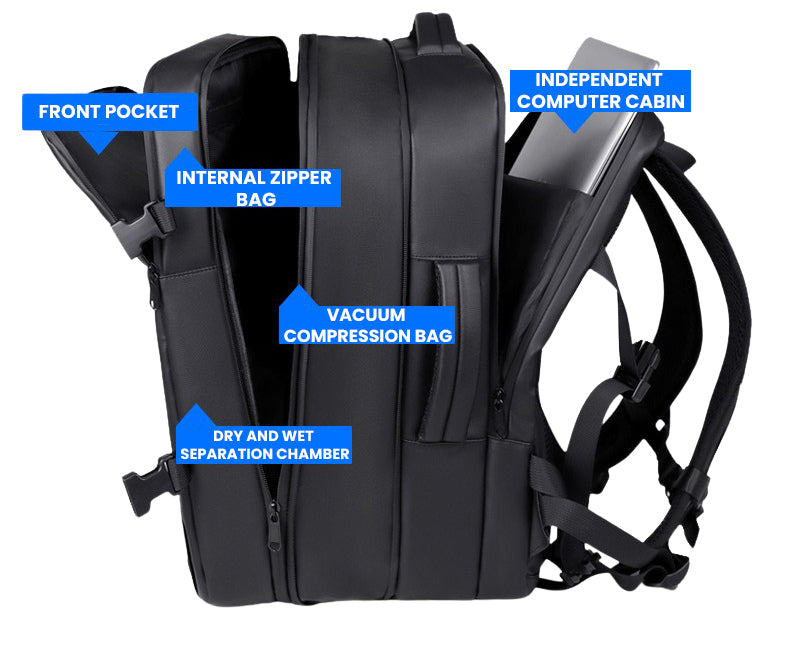 Vacuum Compression System – Expandable storage that allows you to maximize packing space. Ideal for business trips and extended travels.