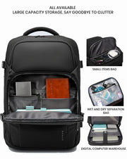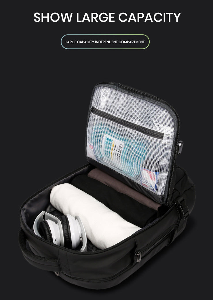This multifunctional backpack is equipped with features like breathability, waterproofing, USB charging capability, wear resistance, shock resistance, and load reduction. It combines these functionalities with a lightweight design, making it the ideal choice for those on the go.