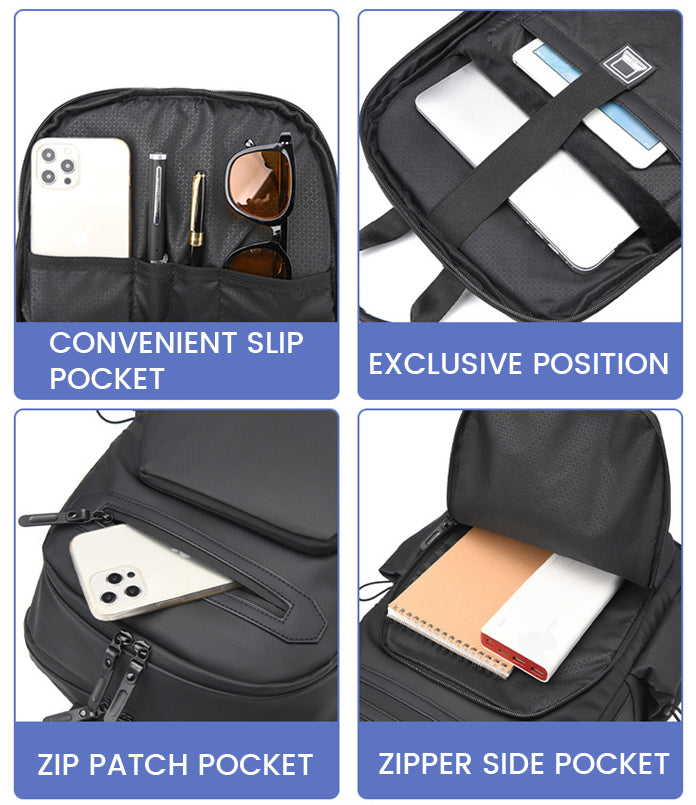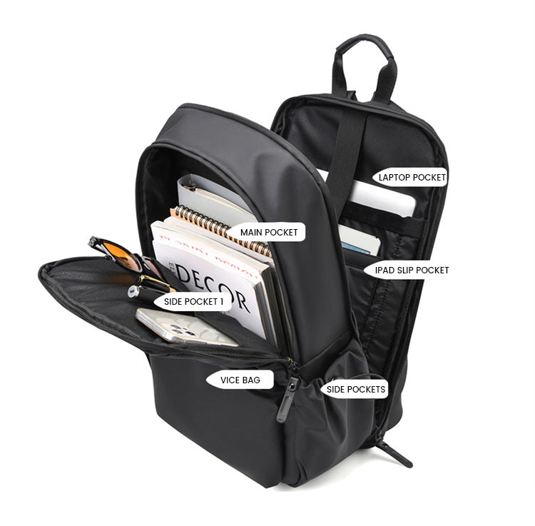 Product Keywords: Stride Quantum Backpack, Multi-layer Backpack, 180 Degree Opening and Closing, Wear-Resistant, PU Material, Lightweight, Stylish, Breathable, Waterproof, Genderless, High-Quality, Business, Travel, Outdoor, Laptop Size 15"/15.6"/16", Zipper Opening, Below 20L Capacity