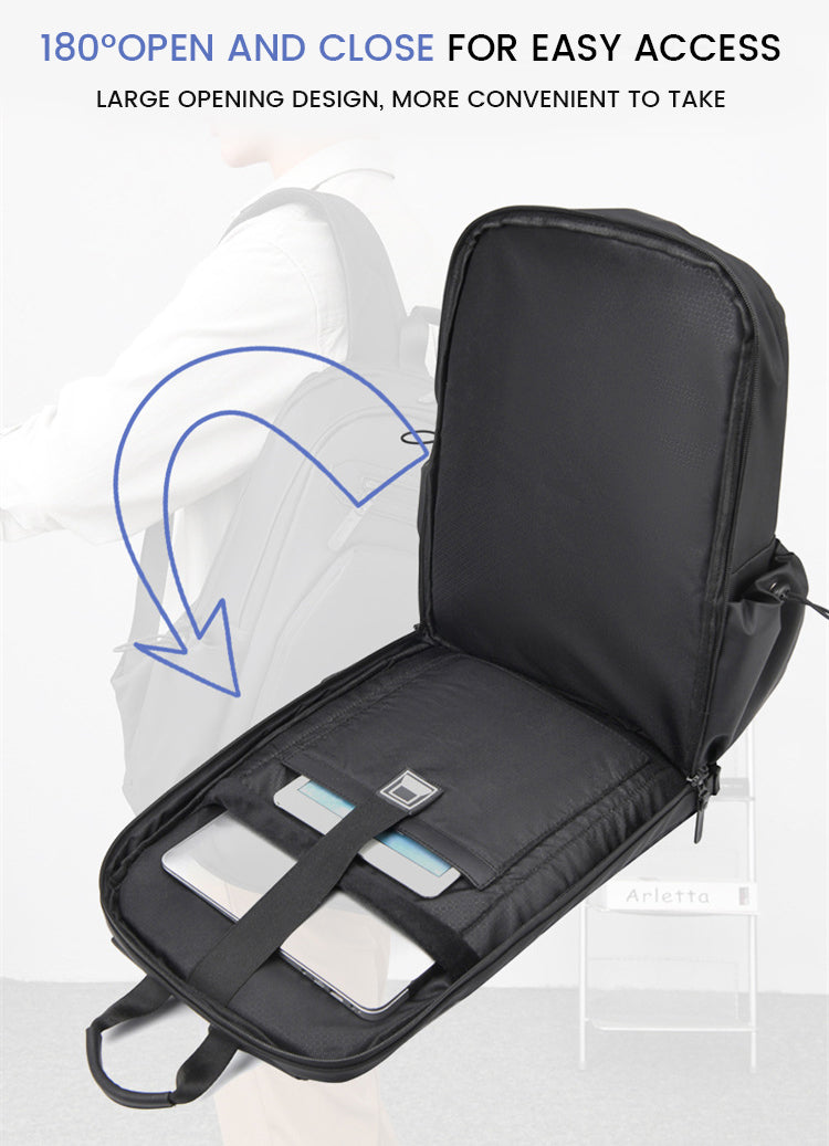 Weighing just 0.88kg, this lightweight backpack provides optimal portability without compromising on storage capacity. The multi-layer space design with a 180-degree opening and closing feature allows for convenient organization of your belongings, including laptops of sizes 15", 15.6", and 16" (45x31x15cm).