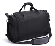The Sports Tabu Travel Bag is equipped to carry more items, making your life easier when you’re on the go! This black duffel bag is designed with multiple side pockets to securely keep small items safe. The Sports Tabu Travel Bag has a large capacity that fits a 17” laptop, with padded shoulder straps for a comfortable carry on.
